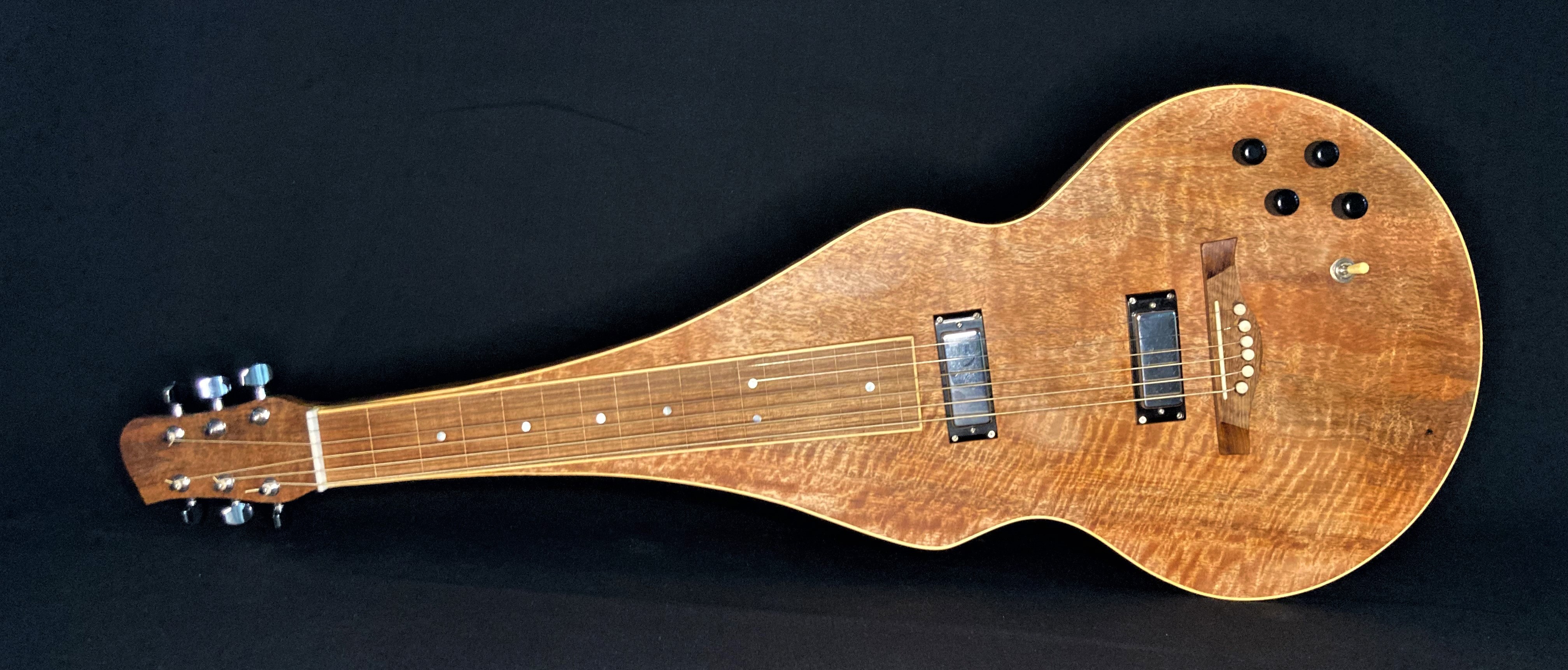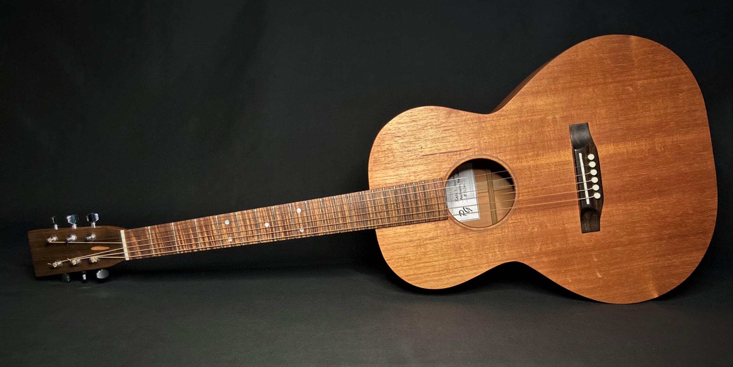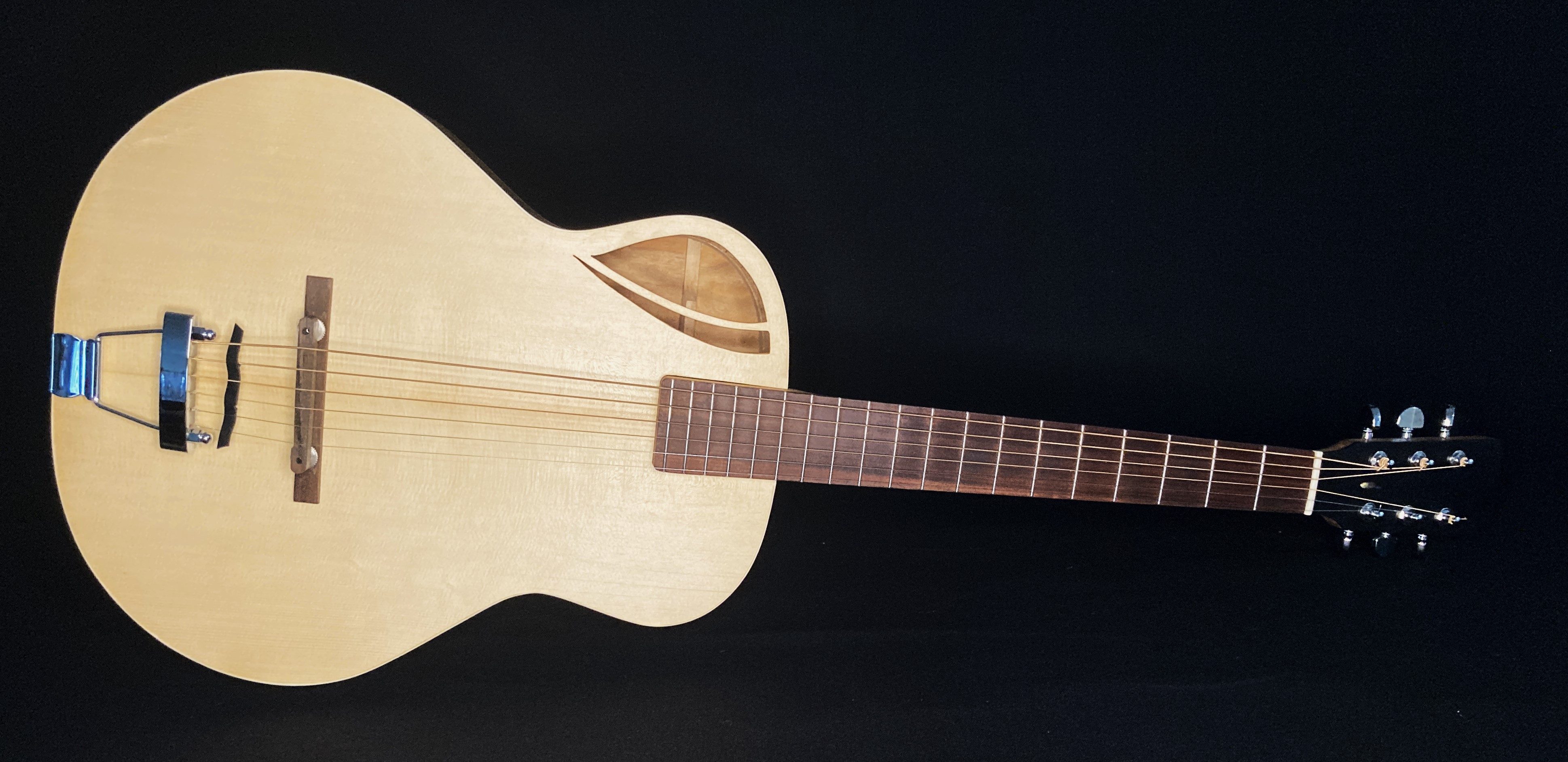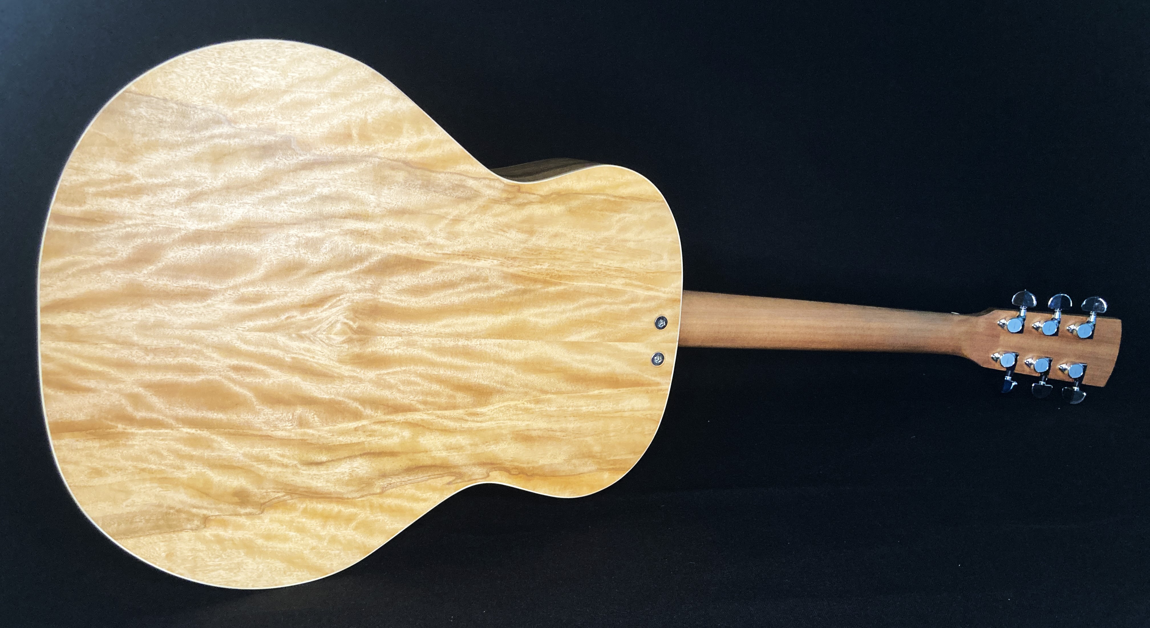 The first guitar I ever made with Chris Wynne in 2011. This was badly damaged in the 2019 Townsville floods but with Chris’s words of “it’s just wood” still ringing in my ears I couldn’t throw it out. A new back, neck, tuners, bridge, binding and soundhole rosette and it still sings to me. OO with red cedar with blackwood fretboardGS mini size 12 string with spruce and QLD mapleOM flat top with bunya and QLD walnut